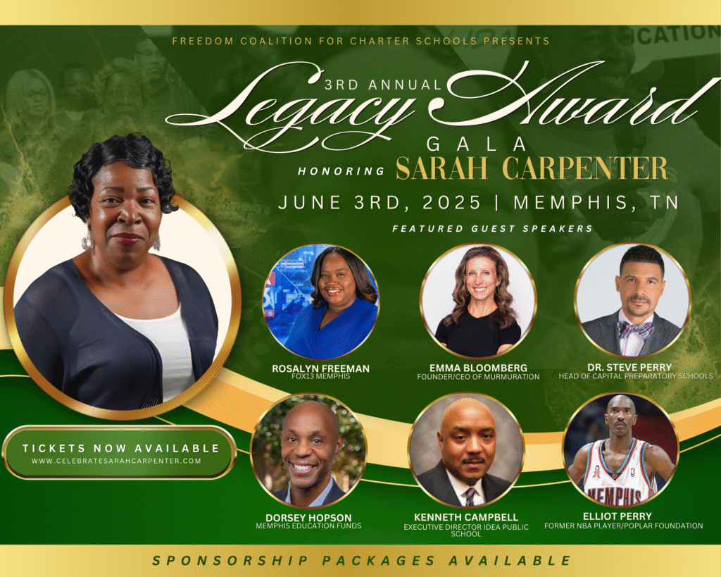 The Freedom Coalition for Charter Schools invites you to our 3rd Annual Legacy Award Gala as we honor the extraordinary Sarah Carpenter—a visionary leader whose tireless dedication has transformed educational opportunities for countless students and families.